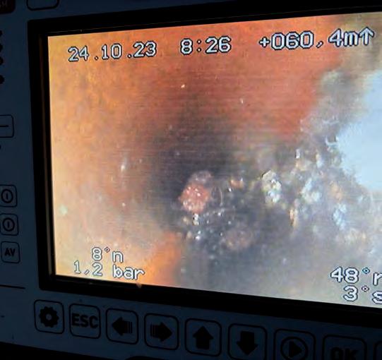 André fra Wastewater hoppa ned i kummer for å spyle og kjøre kamera.
