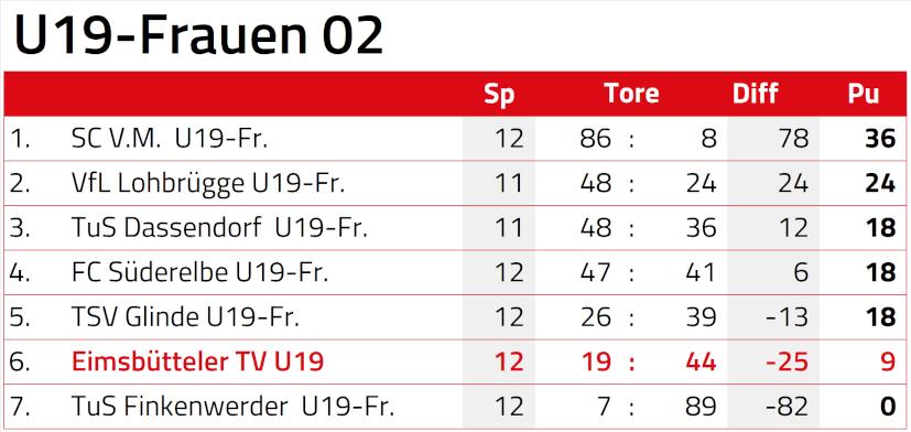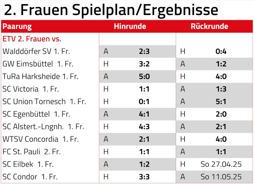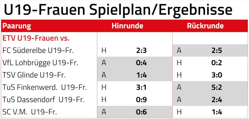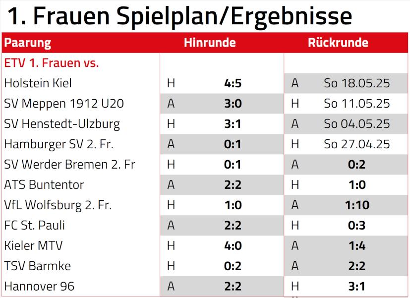 Aufstellung ETV: Özmen, Yildiz (60. Min. Lopes), Olayisoye, B. Karim Mohamed, Asare (60. Min. Leptien), Pauli (73. Min. Fricke), Qestaj, Boakye (73. Min. D. Karim Mohamed), Hölscher, Marxen, Adam (81. Min. Gries)
