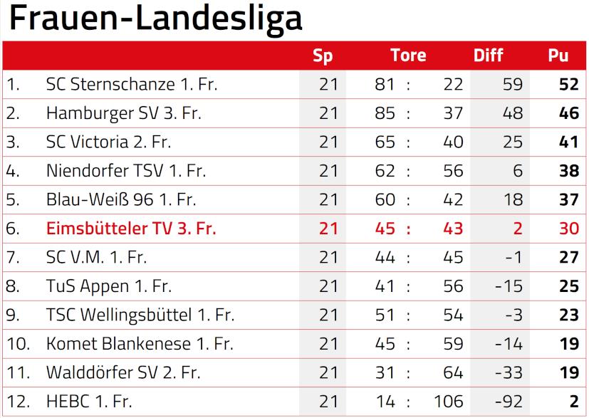 Tabellenstand: