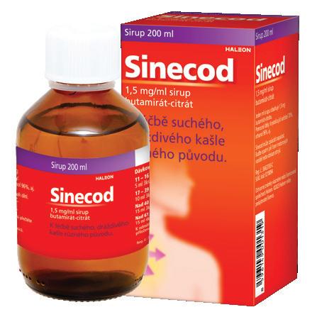 Čtěte pečlivě příbalovou informaci. Sinecod 1,5 mg/ml sirup a Sinecod 5 mg/ml perorální kapky, roztok, obsahují butamirát-citrát. Léky k vnitřnímu užití.