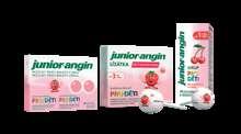 Junior-angin pastilky pro děti, 36 ks, za 215 Kč, Junior-angin sirup pro děti, 100 ml, za 199 Kč a Junior-angin lízátka pro děti, 8 ks, za 165 Kč.