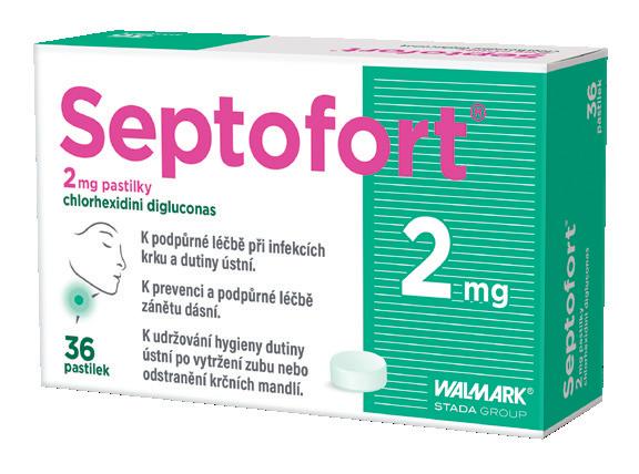Septofort je volně prodejný léčivý přípravek k rozpuštění v ústech. Obsahuje chlorhexidin. Čtěte pečlivě příbalovou informaci a ohledně užívání se poraďte se svým lékařem nebo lékárníkem.