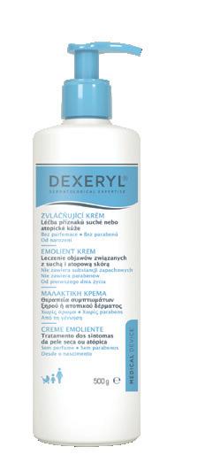 DEXERYL® zvláčňující krém je zdravotnický prostředek. CE certifikát vydala notifikovaná osoba číslo 0459. Čtěte pečlivě návod k použití a informace o bezpečném používání prostředku. Nepoužívejte při alergii na některou ze složek. Uchovávejte mimo dosah dětí. DEXERYL® mycí olej je kosmetický přípravek.