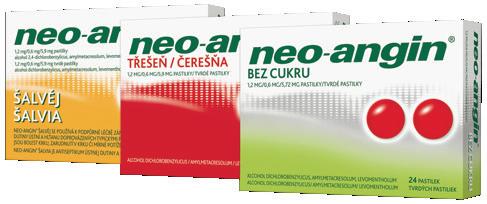 Neo-angin® bez cukru 1,2 mg/0,6 mg/5,72 mg pastilek, Neo-angin® třešeň 1,2 mg/0,6 mg/5,9 mg pastilky a Neo-angin® šalvěj 1,2 mg/0,6 mg/5,9 mg pastilky jsou léky k orálnímu podání. Čtěte pečlivě příbalovou informaci.
