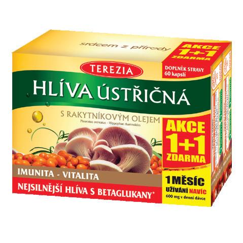 TEREZIA Hlíva ústřičná s rakytníkovým olejem, 100 + 100 kapslí, za 549 Kč (2,75 Kč / 1 cps.) a TEREZIA Hlíva ústřičná + lactobacily, 60 + 60 kapslí, za 399 Kč (3,33 Kč / 1 cps.).