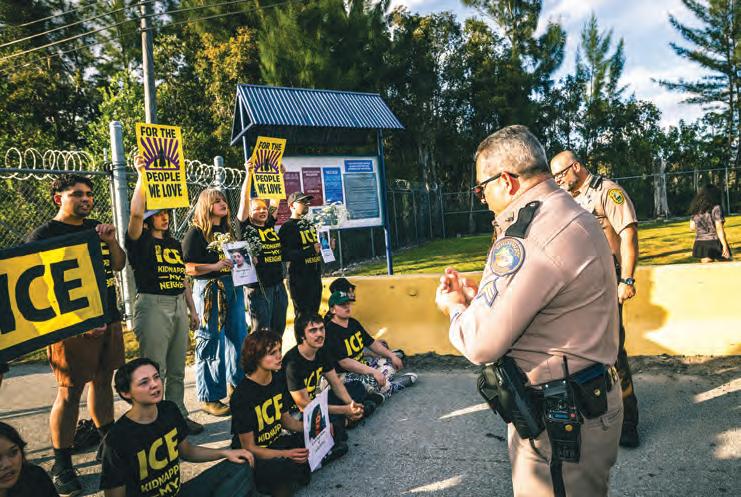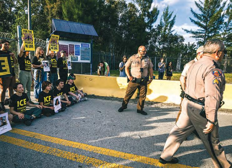As Miami-Dade police officers moved to arrest them last Saturday afternoon, protestors from the Sunshine Movement sang a simple song: “I am not afraid. I am not afraid. I will fight for liberation because I know why I was made.” Blocking the entrance to the Krome detention center on the southeastern edge of the Florida Everglades—which is being used by U.S. Immigration and Customs Enforcement as a processing facility—protesters were brought to their feet and detained by officers. Read more on p. 21 and see all the photos via cltampa. com/news.—Ray Roa