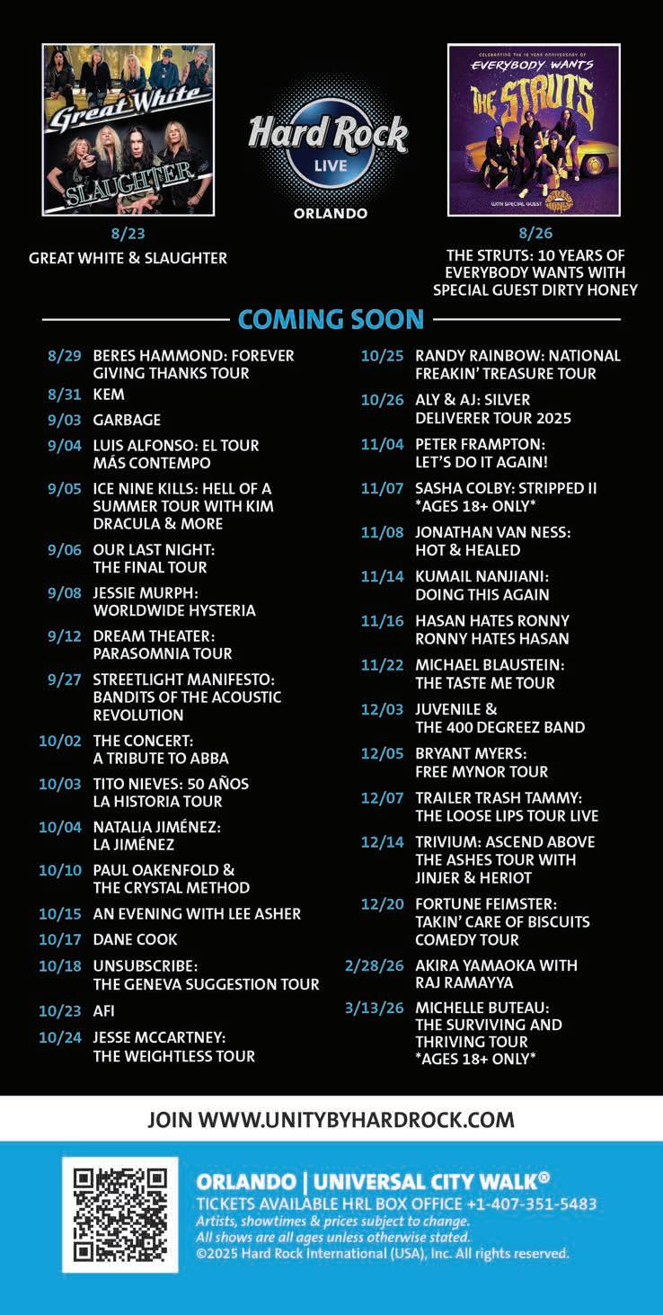 The Struts, Dirty Honey 8 pm; Hard Rock Live, 6050 Universal Blvd.; $34.50-$45.50; 407-351-5483.