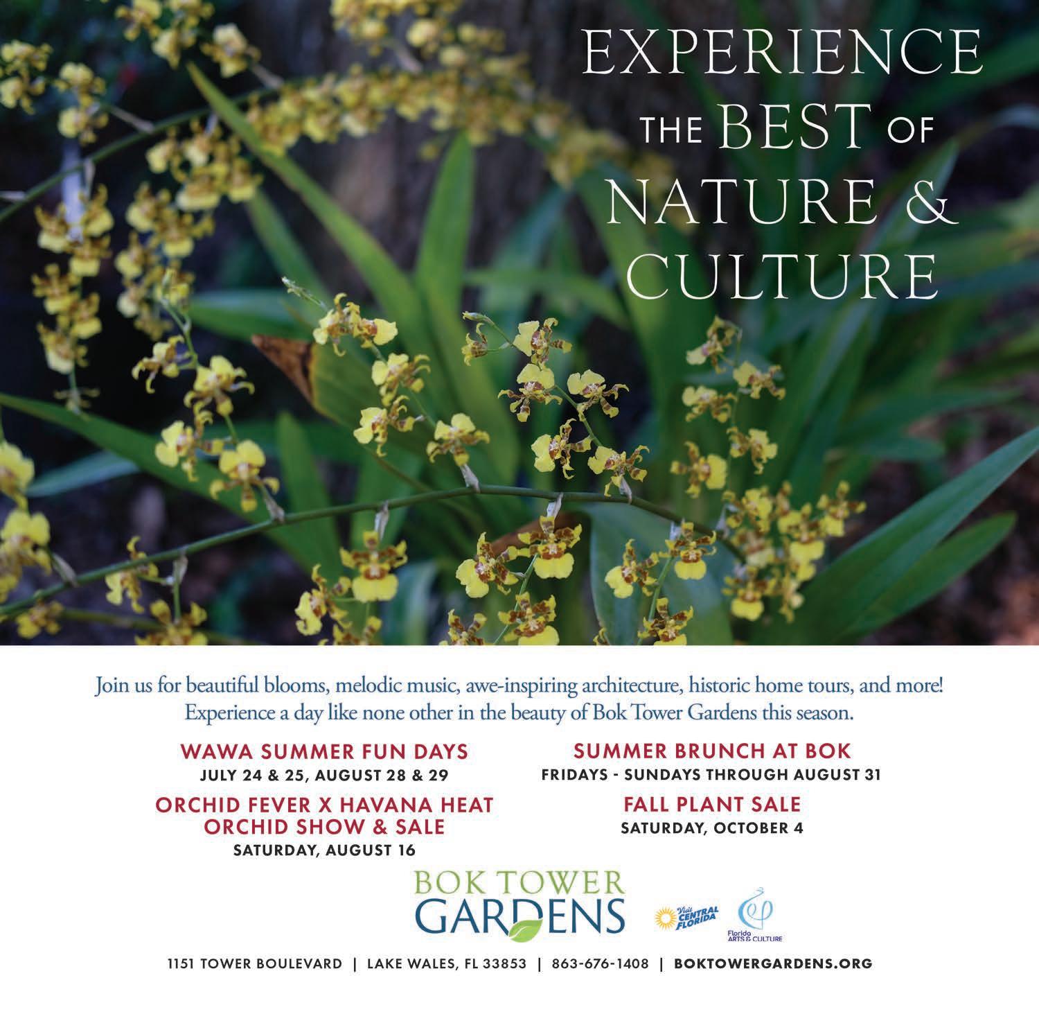 Training Participants will learn the practical magic of “green immersion” through simple exercises that stimulate the senses, release endorphins, enhance mental clarity, neutralize anxiety, lift the weight of fatigue and replenish the spirit. 10 am Wednesday; Mead Botanical Garden, 1300 S. Denning Drive, Winter Park; free; 407-622-6323; meadgarden.org.