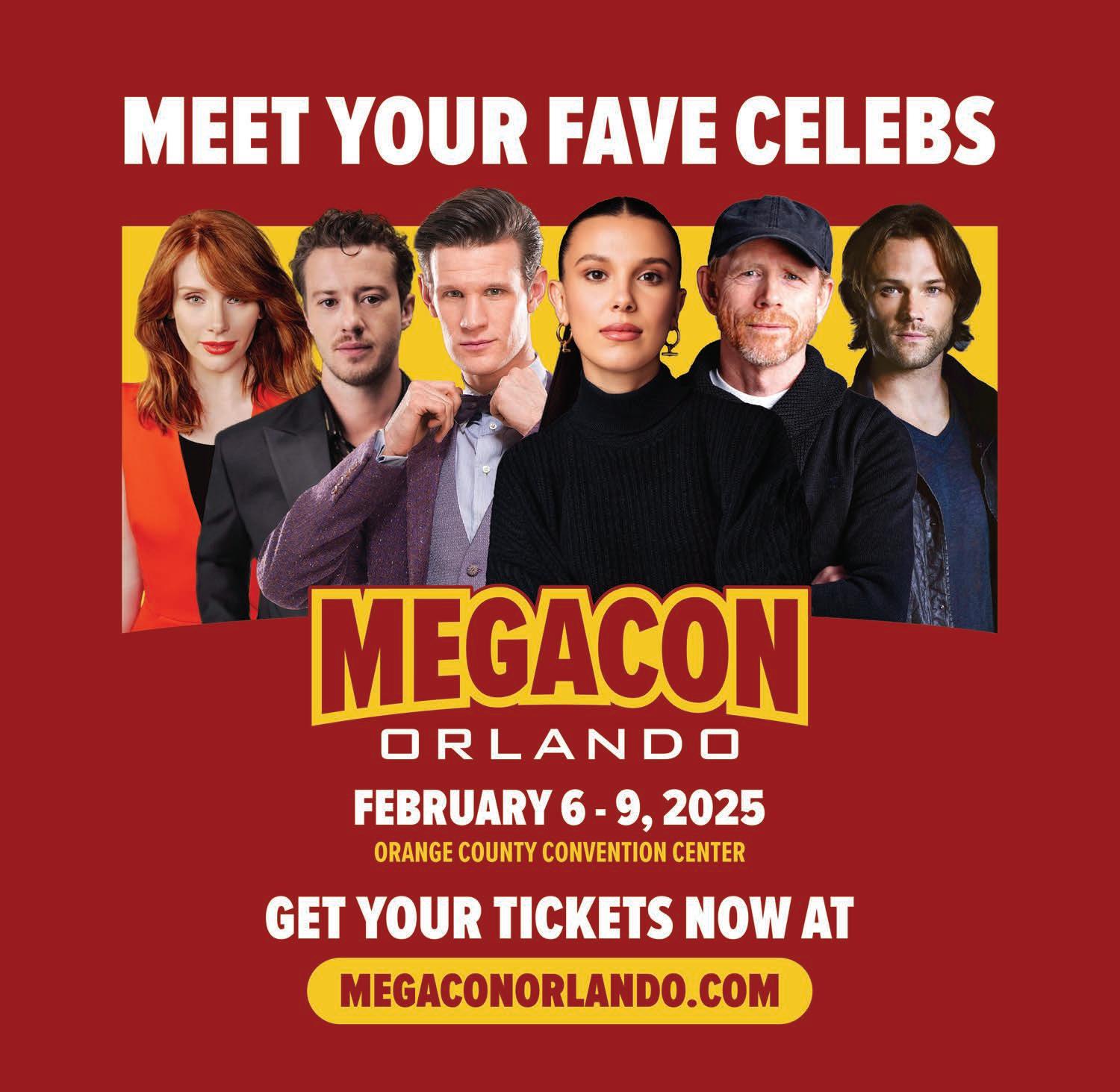 MegaCon The ultimate hub for movies, TV, comics, cosplay, sci-fi, fantasy, horror, anime and gaming. Millie Bobby Brown, Joseph Quinn, Molly Ringwald, Judd Nelson, Matt Smith and more. Thursday-Sunday; Orange County Convention Center, 9800 International Drive; $15-$549; 407-685-9800.