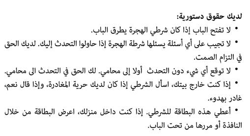 The Constitution sets out many protections on the basis of personhood, using the term “person” rather than “citizen.” These cards may be helpful to any English, Spanish, Kréyol or Arabic speakers who fear detention or deportation