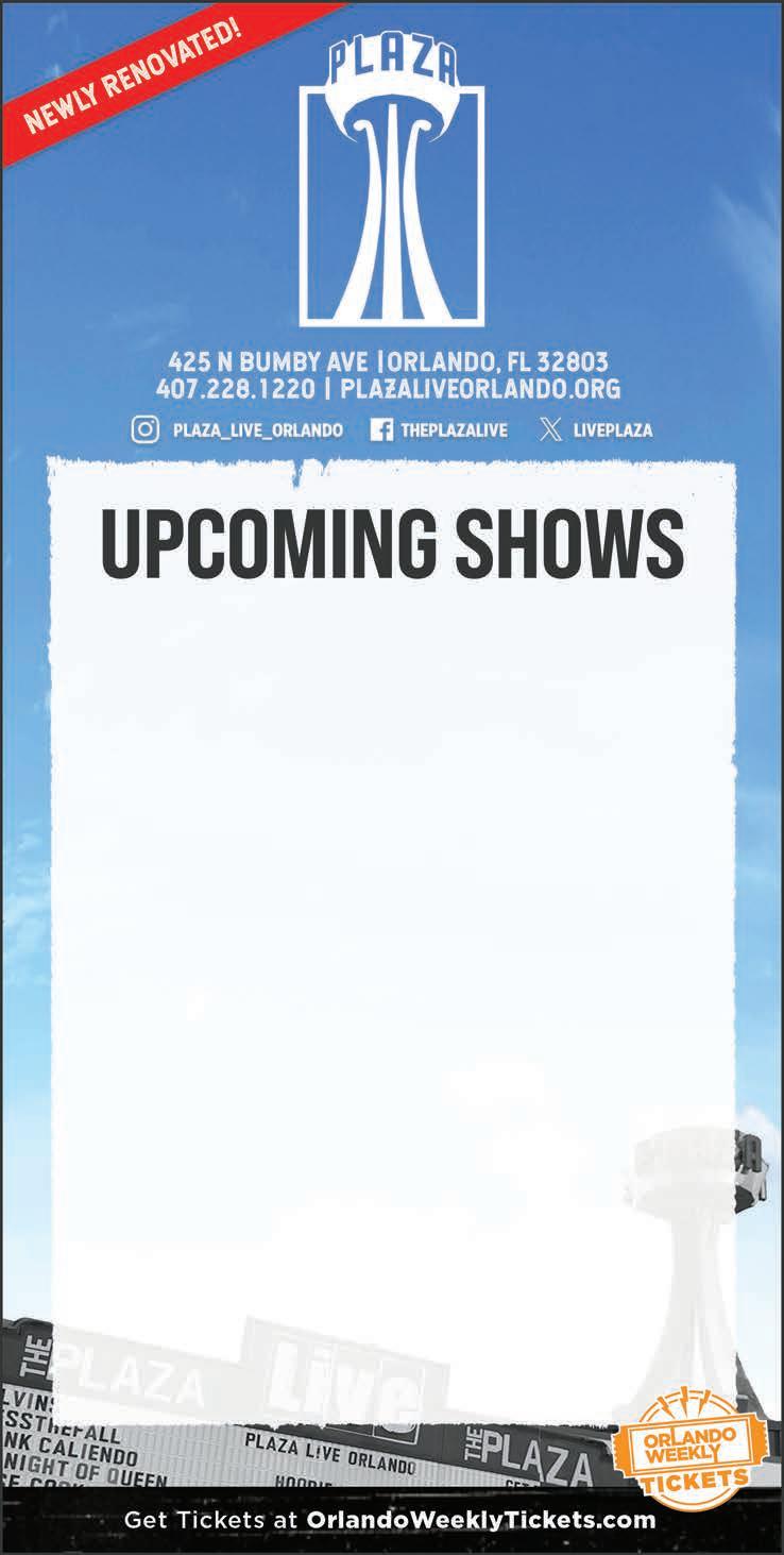 National Advertising: Voice Media Group 1-888-278-9866, vmgadvertising.com Orlando Weekly Inc. Phone 407-377-0400