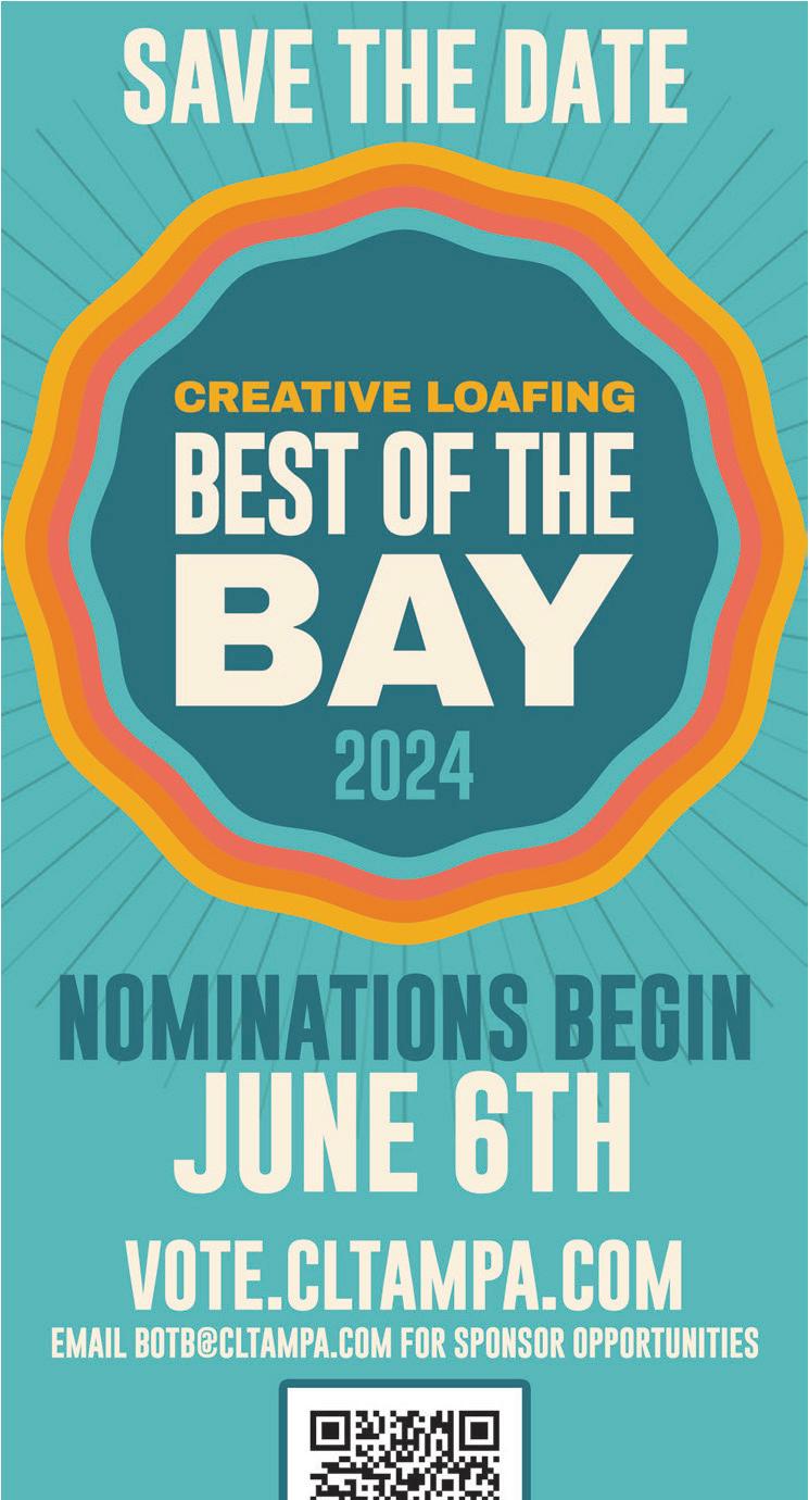 EDITORIAL POLICY — Creative Loafing Tampa Bay is a publication covering public issues, the arts and entertainment. In our pages appear views from across the political and social spectrum. They do not necessarily represent the views of the publisher.