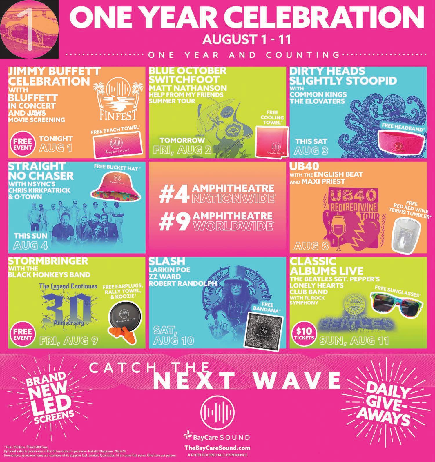 1st Annual Fin Fest: Jimmy Buffett Celebrations w/Bluffett Jimmy Buffett’s Coral Reefer Band announced a handful of tribute tour dates over the summer, and while the late singer-songwriter rose to fame and fortune in the Sunshine State, there’s not one date in Florida. Enter Bluffett. The eight-piece tribute band features a Jimmy lookalike and headlines the 1st Annual Fin Fest (not to be confused with Jacksonville Beach’s Florida Fin Fest). A full set from Bluffet’s “Son Of A Sailor Band” promises all the favorites, while festival organizers also have plans to screen the 1975 classic “Jaws” in the evening. (The BayCare Sound, Clearwater)