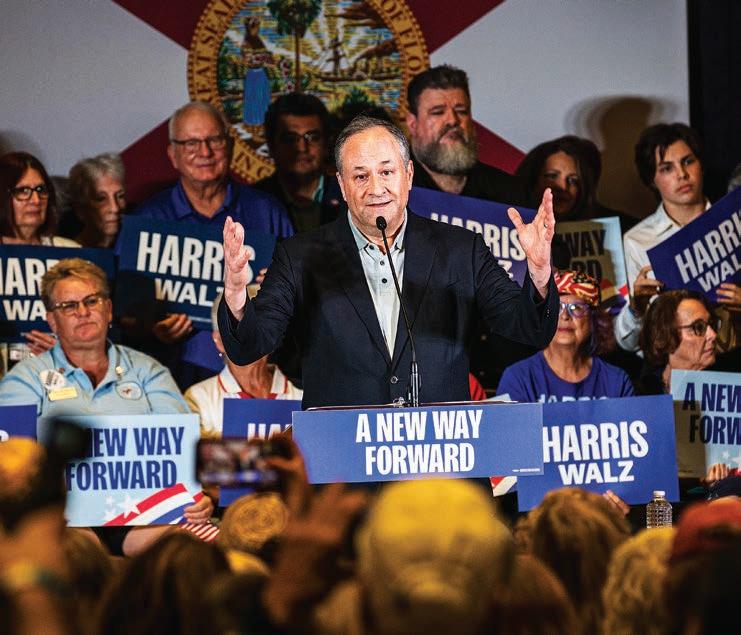 Friday the 13th was extra freaky for conservatives in The Villages last Friday thanks to the sight of Doug Emhoff, the Second Gentleman—aka husband of Vice President and presidential nominee Kamala Harris. The 59-year-old ralled Democrats inside and then joined the crowd of supporters and golf carts outside. His party has a lot of work to do in the Sunshine State, however, as the Fivethirtyeight has the vice president trailing the former president by more than four points. Read more and see more photos via cltampa.com/slideshows.—Ray Roa