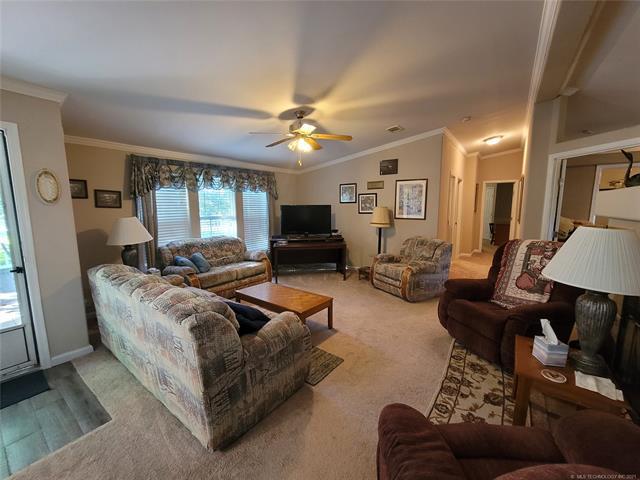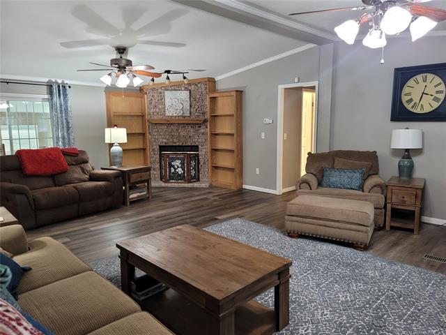 IMMACULATE HOME IN LONGTOWN AREA AND WITHIN A MILE TO LAKE EUFAULA, OK! Own the best of manufactured homes (Solitaire) set up with everything you need! This handsome & cute home has great curb appeal and is in immaculate condition. Enjoy the spacious yard with lots of beautiful flowers & plants. There is a fenced area for pets and kids and a large 24x60 garden area for your green thumb! Store your toys in the 36x36 garage/shop building and much more! Home has 2 built on living areas, too! Must see!