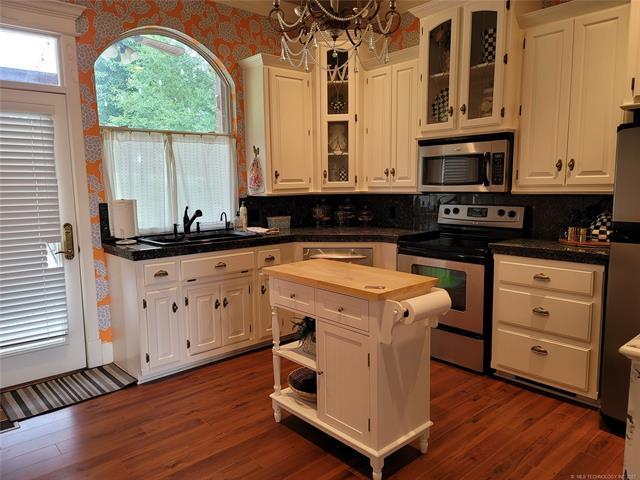 been recently updated to include all new paint and flooring. Both bathrooms have been completely remodeled and granite countertops added. It has a trail behind the home that leads directly to the lake! Large back deck makes a perfect place to relax and entertain friends and family. Detached metal garage is perfect for storing all of your lake toys. CALL TODAY! This one will not last long. MLS#2122447 Call Tonya at 918-490-