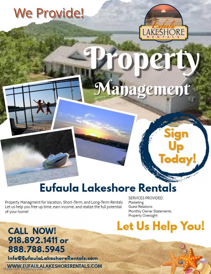 In addition to this, we provide Vacation Property Management services in the Lake Eufaula area. We are the most comprehensive full service real estate company in all of Southeastern Oklahoma!