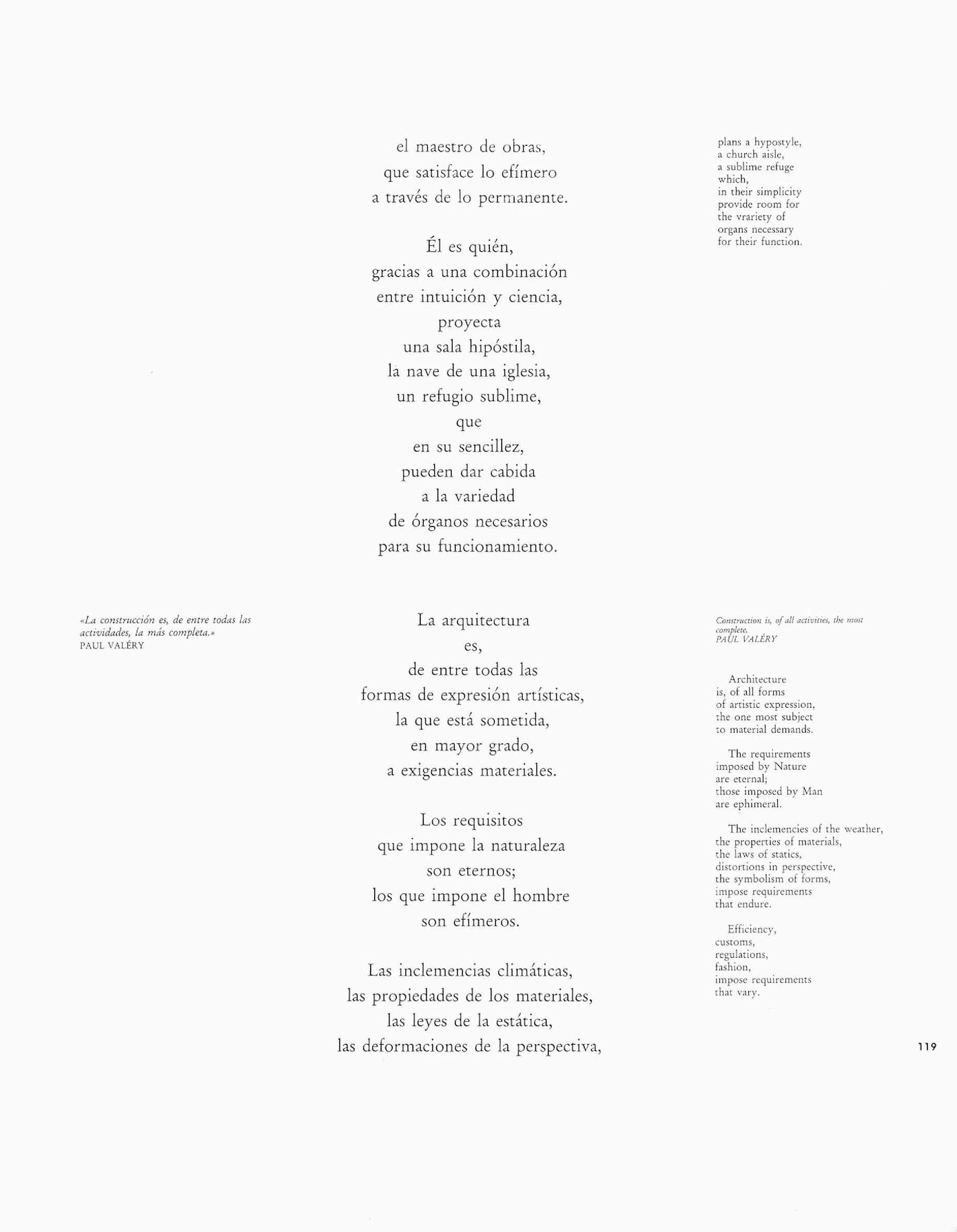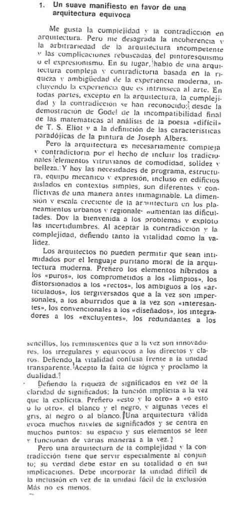 La arqu tectura es, por naturaleza, un campo de batalla de conceptos. Se la ha defin do como el reflejo del tiempo y, al mismo tiempo, como la búsqueda de la atemporalidad. Se la ha presentado como un acto de orden, pero también como la manifestación de la contrad cción.