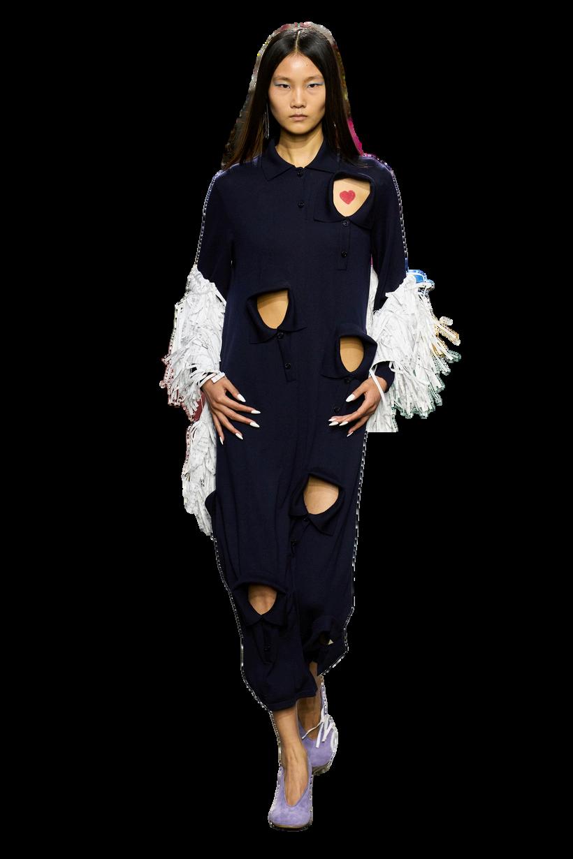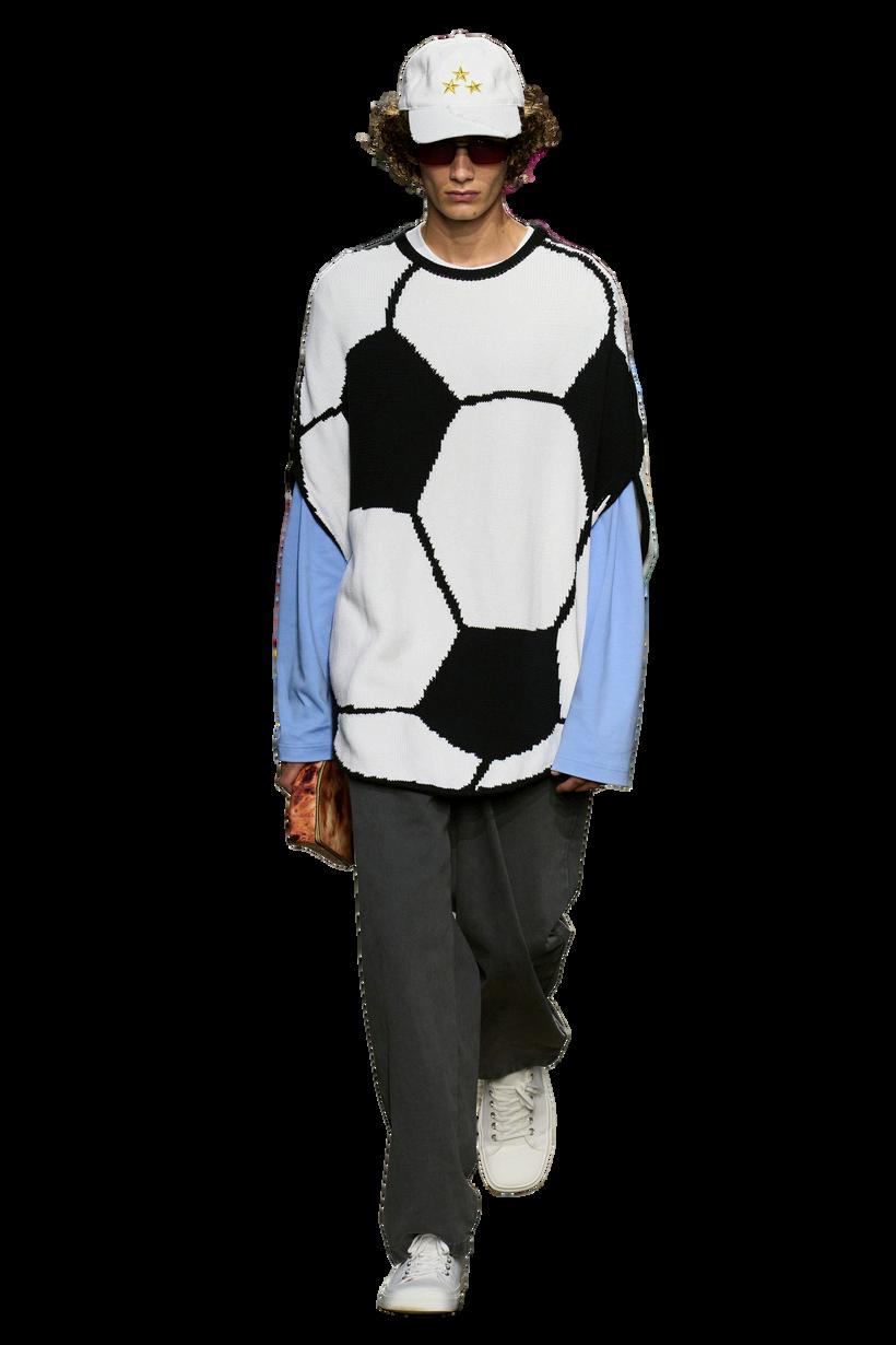 A través de siluetas irregulares, colores vibrantes en detalles de Arte Pop influenciados por Andy Warhol, la marca redefine la sastrería tradicional con un enfoque lúdico y extravagante. La combinación texturas innovadoras crean do una experiencia visual y táctil que equilibra la elegancia y el desorden. Moschino, fiel a su estilo, propone una reinterpretación del lujo disruptivo, haciendo de esta colección una declaración de modernidad y expresión personal.