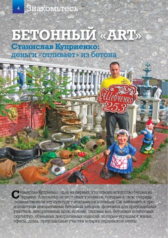 танислав Куприенко один из первых, кто освоил искусcтво бетона на Украине. А перенял он этот опыт у поляков, которые в свою очередь позаимствовали эту культуру у итальянцев и немцев. Он занимается производством декоративных бетонных заборов, фонтанов для приусадебных участков, декоративных арок, колонн, садовых ваз, бетонных и гипсовых скульптур, объемных декоративных изделий, которые украшают жилье, офисы, дома, приусадебные участки и парки украинской элиты.
