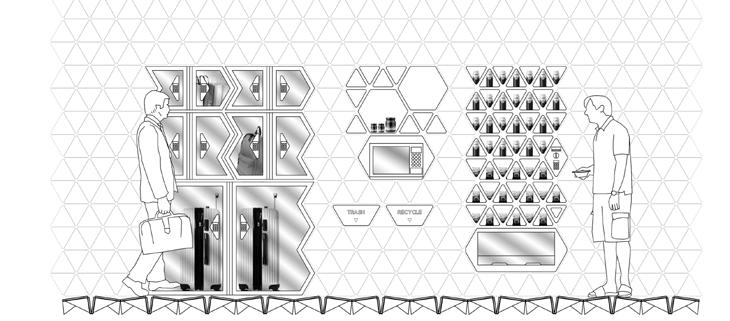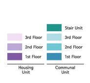 Customization of Units Step 1 Calculate BCR and FAR (Controling Parameter) BCR(Building Coverage Ratio) = built area of a building / plot area x 100) FAR(Floor Area Ratio) = gross floor area plot area x 100 40% BCR / 200% FAR Heights Restriction 12m 1st Floor 2nd Floor ▼ 2nd Floor ▼ 1st Floor Step 2 Plan Circulation Using Stair Units Sewage Electricicy Vertical Farm Solar Panels Gardening Panels Studio Complex Neighborhood Amenities