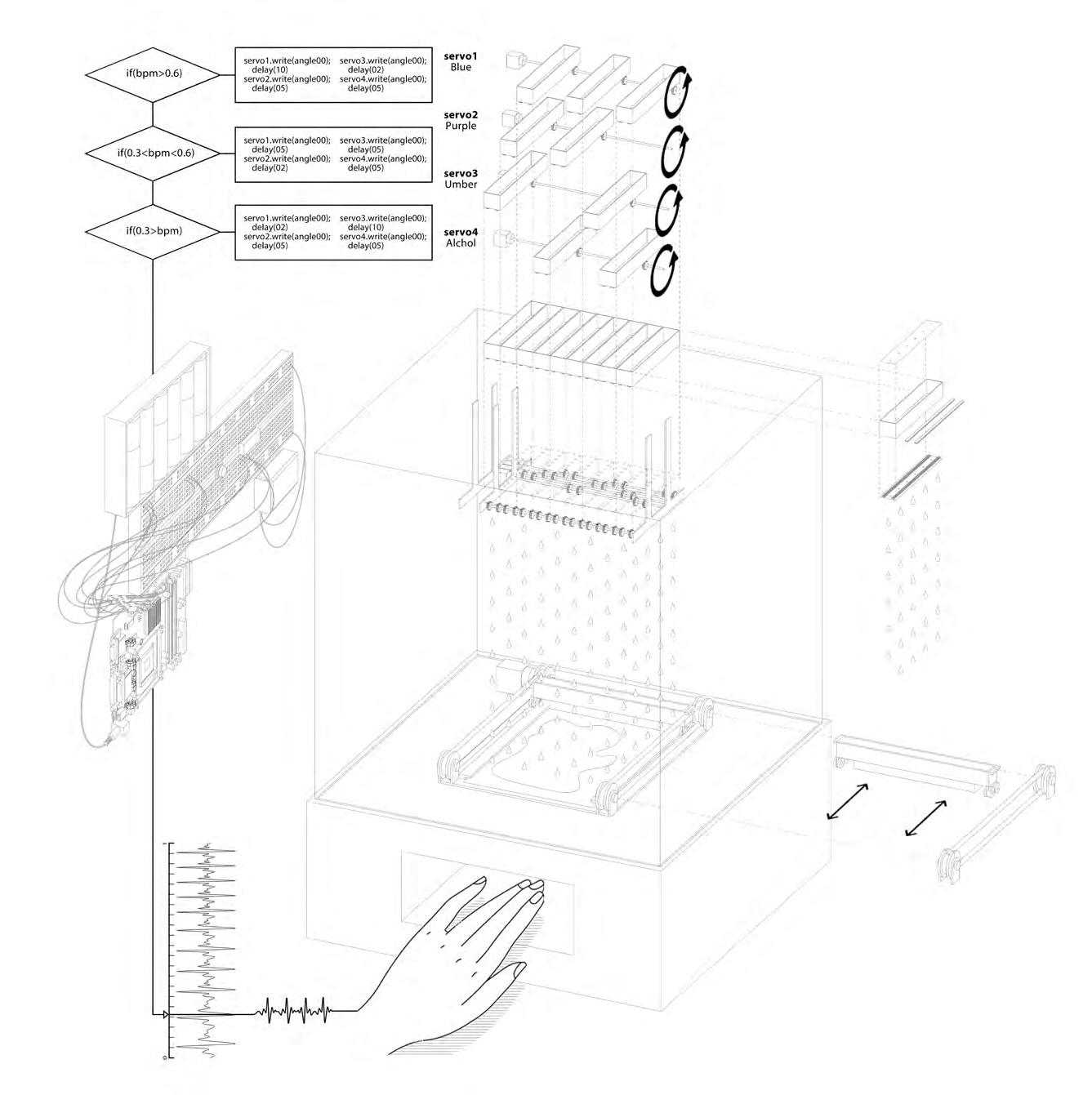 We have the experience of relieving stress when we hear the sound of rain or get caught in the rain. think this is because we can sympathize with nature. When we are sad, nature also cries with us and comforts our hearts, like a friend who stays next to you when you feel sad. My damage is rain. am studying the interaction between architecture and nature, and through this, concluded that architecture can serve as a medium for em-