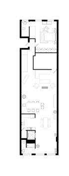 The unit is intended for (business) people who want to work and rest undisturbed. Here they can simulate daylight, so they can get used to the daily rhythm of their destination. Therefore we make use of a double left wall and ceiling. This zone is 1 meter wide and contains the lighting. The access to the room is in the short wall. There are no other openings visually and acoustically it is completely separated from its surroundings.