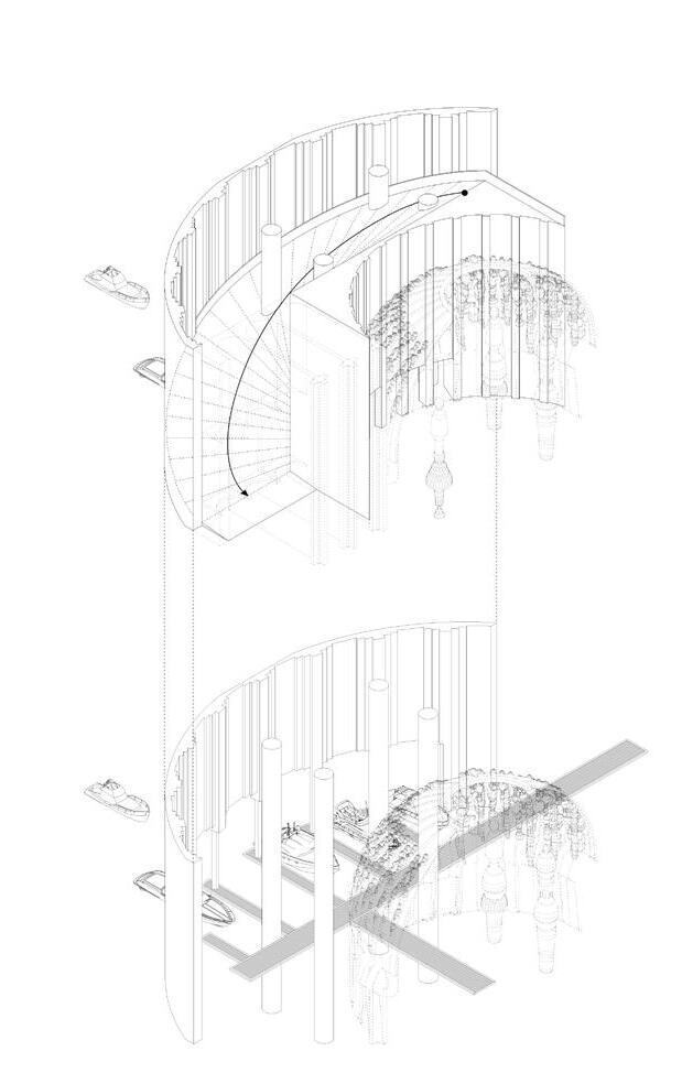 pathy with nature. This building shows how architecture influences the way we control our mental damage, acting as an enzyme for catalysing empathy with nature. For the death no one haven’t heard, in my boat house, the nature cry and mourn for them.