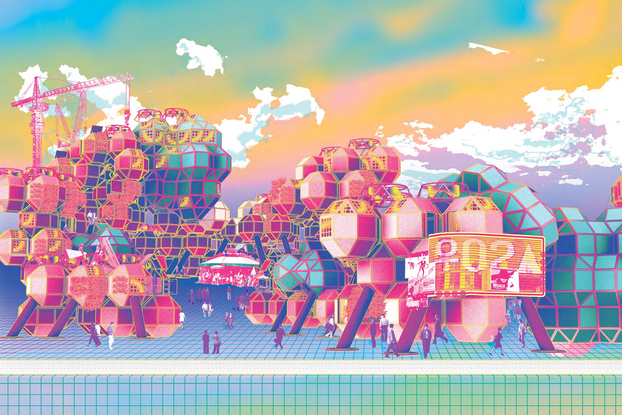 Agriculture has been closest to nature in long history. thought it was contrived to completely control the nature, so I made it look like toys and Lego. The agricultural tube that winds around the city is reminiscent of a pinball game rail, and advertisements covered with various clichés are repeatedly played on the billboard. The fascinating proganda covers people’s eyes.