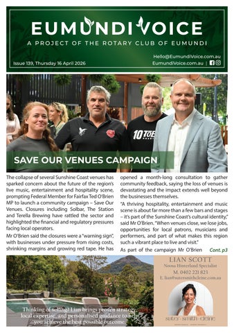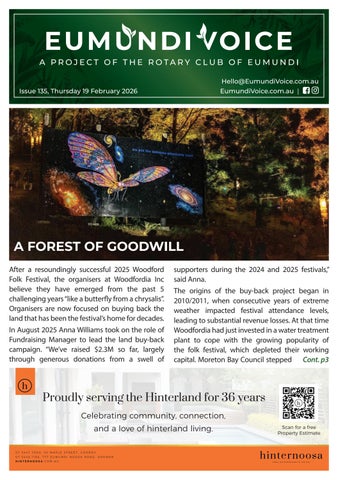 Eumundi Voice is a free, fortnightly 32-36 page colour magazine with up to 4,500 copies published and delivered to letterboxes and community distribution points across Eumundi and surrounds. Published by Eumundi Rotary Initiatives Ltd trading as Eumundi Voice, the magazine is a true community publication offering what’s on, what’s new in town, council and police reports, environment, youth, sport, heritage, travel and more. Find out about local businesses who provide our community with a wide range of products and services so you can ‘buy local and support local’. 100% of surplus funds, after production and overhead costs are deducted, are given back as donations to charities within our community to support worthwhile projects and activities. A dedicated team of volunteers deliver Eumundi Voice every second Thursday in Eumundi and further afield to Verrierdale, Doonan, Belli Park, Kenilworth, Eerwah Vale, North Arm, Cooroy, Kin Kin, Yandina, Pomona and Noosa.