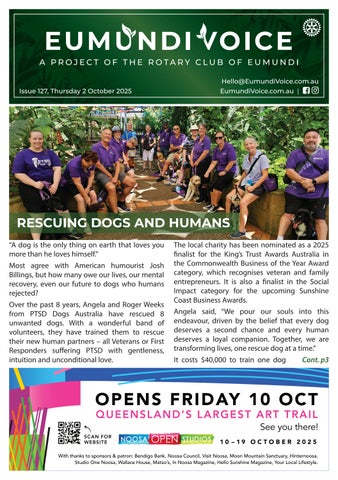 The festival is supported by Berkelouw Books, Matso's Sunshine Coast and the Sunshine Coast Council. Any writers, volunteers or potential sponsors with queries please contact: director@ eumundiwritersfestival.com.au.