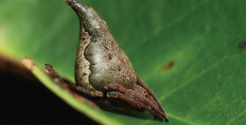 Lastly, the weevil jumping spider (Coccorchestes ferreus) disguises itself as a shiny beetle or weevil with a round shell. Insects with hard shells are generally harder to digest and are therefore avoided by some predators. Being shiny also helps them blend into the surroundings as their shape is less obvious, allowing them to avoid detection from above. These spiders are found in Papua New Guinea and Northern Australia.