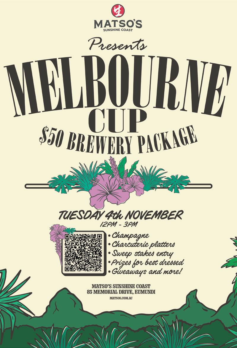 Matso’s Sunshine Coast, Eumundi Celebrate with champagne, charcuterie plates, sweeps, prizes for the best dressed, giveaways and more from 12-3pm. Tickets are $50. Visit: t.ly/R1svu