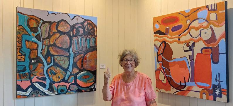 Wendy Catlin, former gallery manager and inaugural president in 2021, presents a “big and bold” solo show in the Banana Shed, displaying large-scale paintings – each nearly 1sqm –depicting Australian landscapes inspired by road trips over the past 5 years. Some of her more recently acquired ceramic skills will also be exhibited.