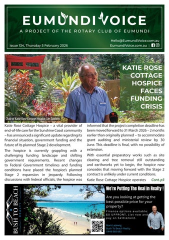 Eumundi Rotary Initiatives Ltd created Eumundi Voice a little apprehensively as a community service to bridge the gap in community connection following the demise of a variety of treasured newspapers and magazines early last year, and as Covid changed daily life for many in Eumundi and surrounds. Cont. p3
