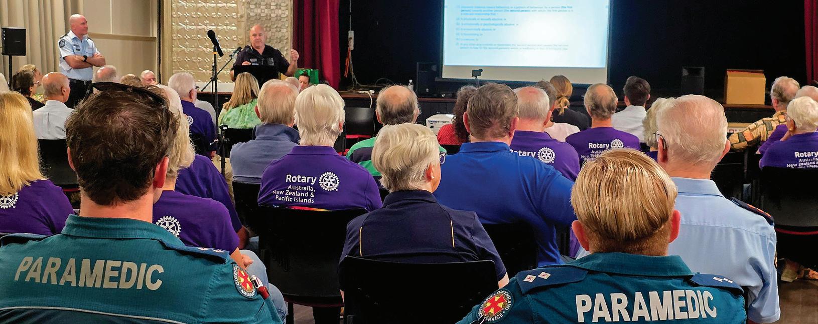 Daybreak, Noosa Heads and Eumundi – have joined together to broaden understanding of the impact of DFV and stimulate community action. More than 80 people attended a seminar at Cooroy Memorial Hall on 18 April and heard from police members A/SenSgt Ryan Hanlon, A/ Sgt Craig McKenzie and Sgt Marie O’Brien about the prevalence of DFV and its impact.