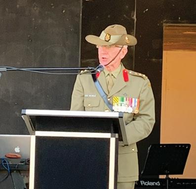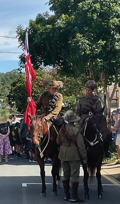 to a well-considered and researched speech by retired Colonel Greg Molyneux. The Noosa Chorale provided musical accompaniment and wreaths were laid by community representatives. The service was followed by a gunfire breakfast provided by the Rotary Club of Eumundi and tea, coffee and cake provided by the Thai Community Assn.