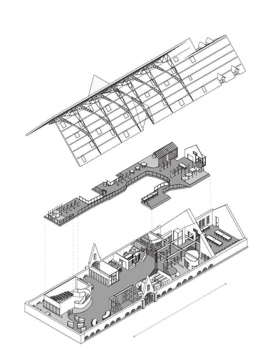 La stratégie du design était de diversifier le niveau de public-privé sur l'espace de lecture, en tenant compte du fait que l'utilisateur est l’adolescent et de l'influence psychologique de l'espace.