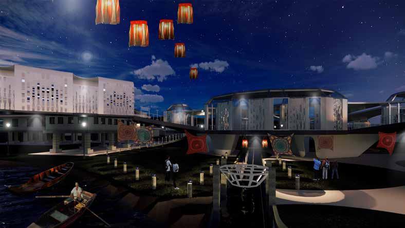 The city of Kuantan is characterized as ‘The Sinking Settlement’ in terms of its geographical landscape shift and the attitude of resignation of its community. In response, ‘The Convertible Buoyancity’ is an innovative urban planning concept that harnesses the principles of equilibrium of buoyancy. The concept of ‘Urban Buoyancy’ is introduced whereby the principle of buoyancy is applied to chieve equilibrium and balance among different urban components. This then constitutes a Social Hydrology Simulative Hub for Kuantan, whereby social hydrology combines principles of hydrology, sociology, and community engagement. The final project is a form of dual structure, amphibious urban architecture that allows for dynamic adaptability, enabling structures to rise and fall with changing water levels. PROJECT Urban Masterplan SITE Kuantan