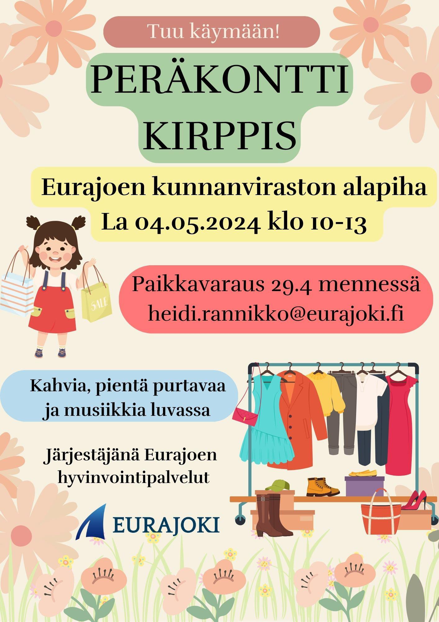 Iltatori Eurajoen torilla. Lisätiedot kunnan tapahtumakalenterista (www.tapahtumakalenteri. eurajoki.fi) lähempänä ajankohtaa. Kirkkotie 6.
