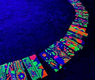 Edellisenä vuonna Arvela toteutti Vuojoen Kartanon talvipuutarhan kahvilaan abstraktit UV-valoilla valaistut tilaan sopivat maalaukset. Siitä lähti liikkeelle idea koululaisten työpajoihin. Materiaaleiksi valittiin kierrätyslautaa, suoraan kotipihan työmaalta. Uuden ulkolaudoituksen myötä talon pihaan oli kertynyt polttopuuksi kelpaavaa lautaa, josta sahattiin lautoja yhteisötaideteoksen käyttöön. Työpajoihin osallistui Eurajoen kouluista Keskustan koulun 3.–6.-luokkalaiset, koko Sydänmaan koulu ja Lapijoen koulun 3.lk. Yhteensä näitä taidokkaita pimeydessä hohtavia teoksia valmistui 167.