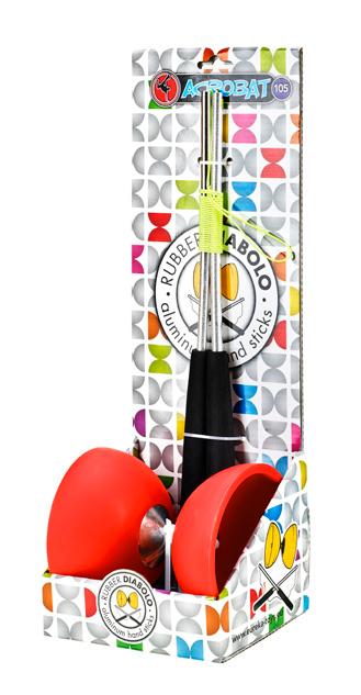 Boxed Acrobat Set 105 Rubber Diabolo [red] + alum. hand sticks, Size 10,5 cm