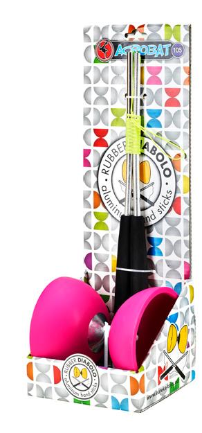 Boxed Acrobat Set 105 Rubber Diabolo [pink] + alum. hand sticks, Size 10,5 cm