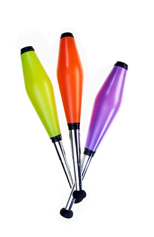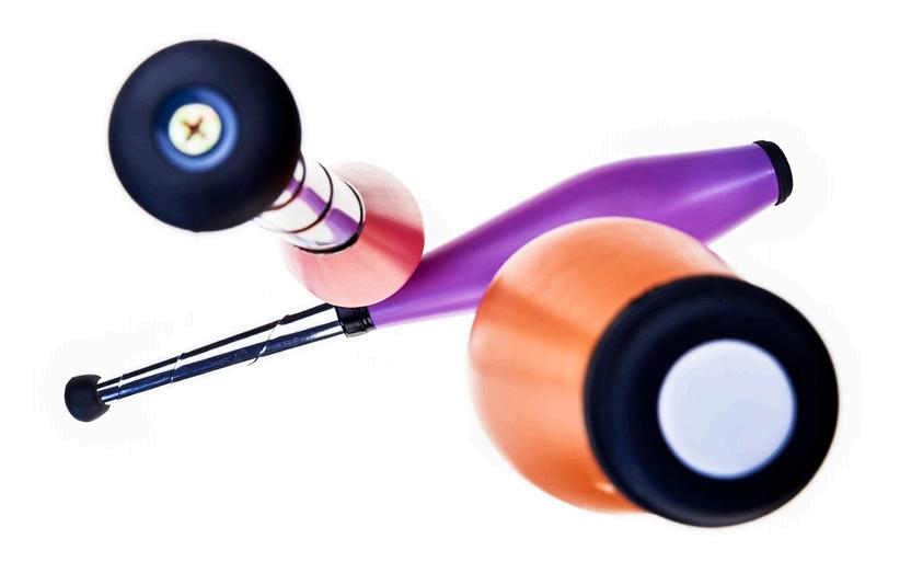 Assortment of 8x3=24 Boxed Acrobat Set 105 Rubber Diabolo’s + alum. hand sticks