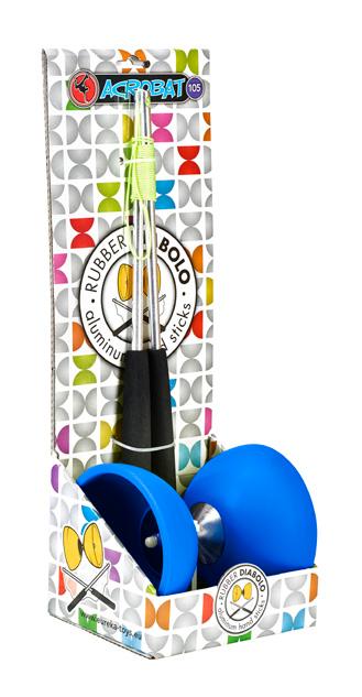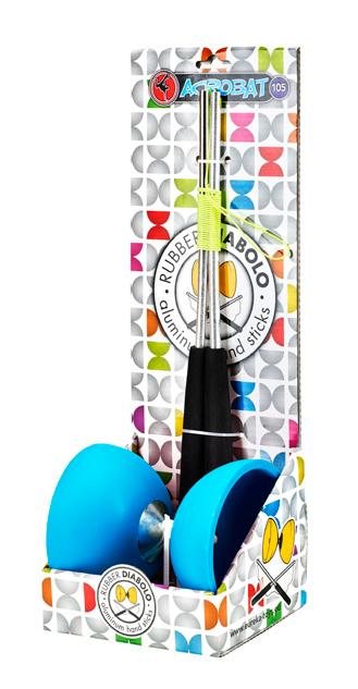 Boxed Acrobat Set 105 Rubber Diabolo [blue] + alum. hand sticks, Size 10,5 cm
