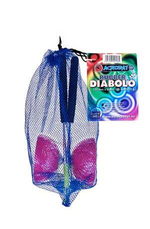 24 Acrobat 105 Rubber Diabolo’s 3x8 colours assorted, each with aluminium sticks in a net bag