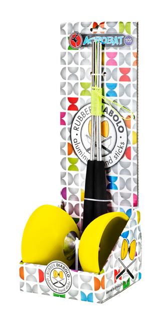 Boxed Acrobat Set 105 Rubber Diabolo [yellow] + alum. hand sticks, Size 10,5 cm