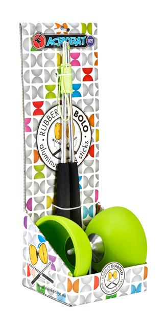Boxed Acrobat Set 105 Rubber Diabolo [light green] + alum. hand sticks, Size 10,5 cm