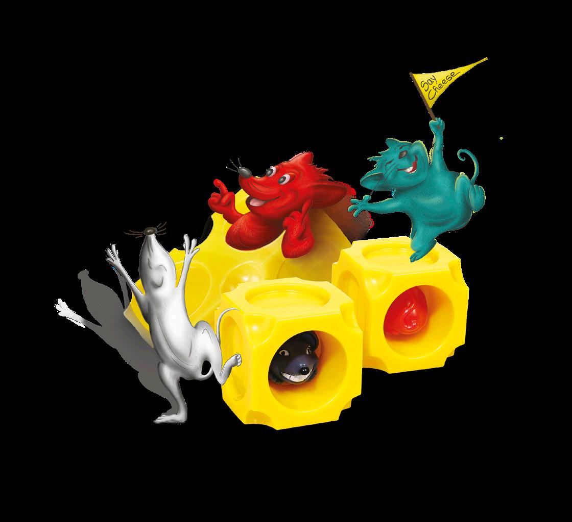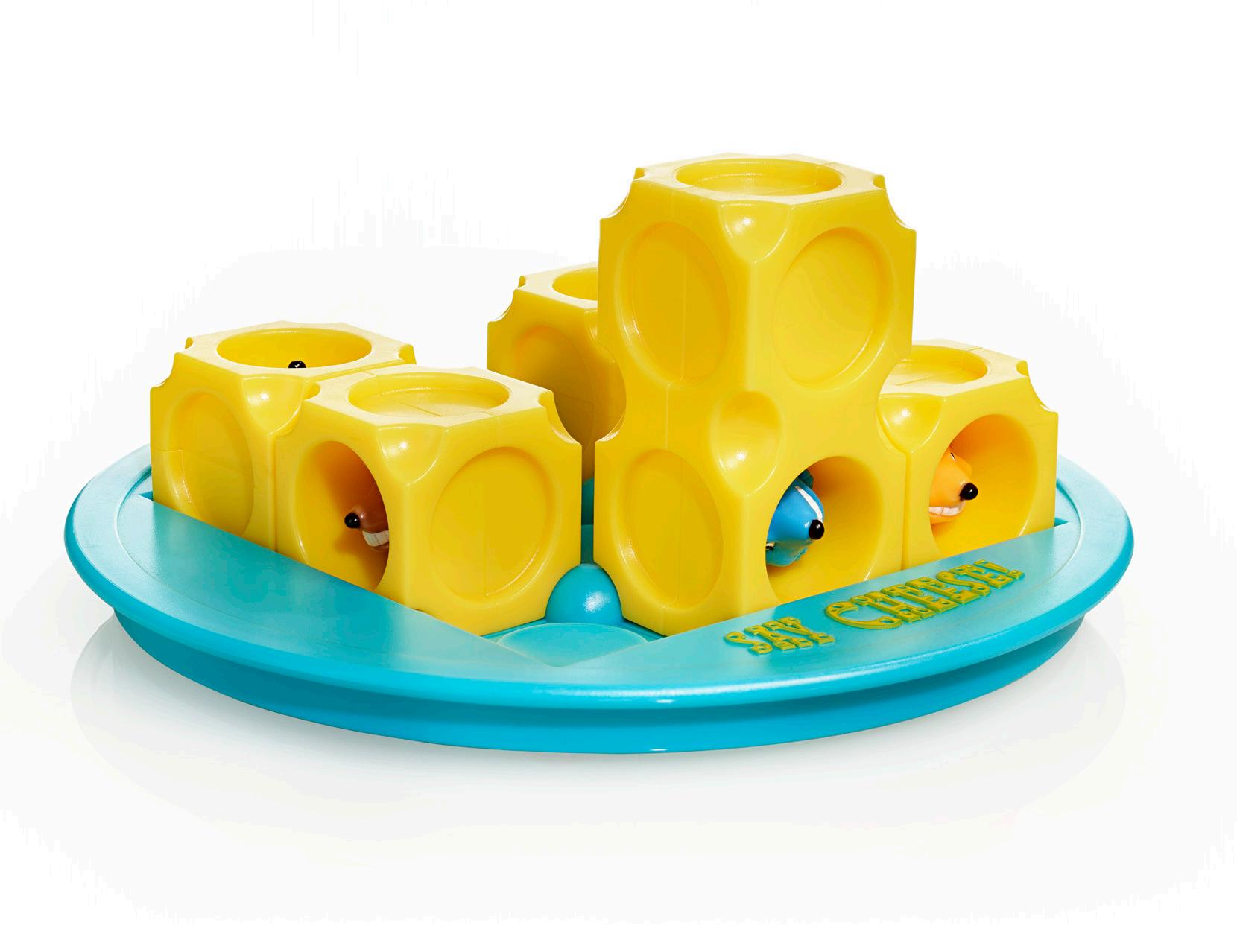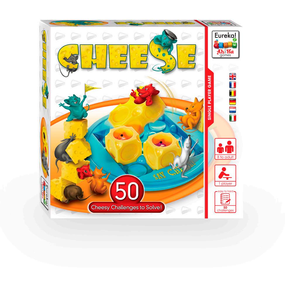 Het doel: kies een uitdaging en plaats de blokken van de kaas zo dat alle muizenstaarten naar boven wijzen. Rol de kaasblokken vervolgens in het rooster tot alle muizenkoppen omhoog wijzen. Waar wacht je nog op? Say Cheese!