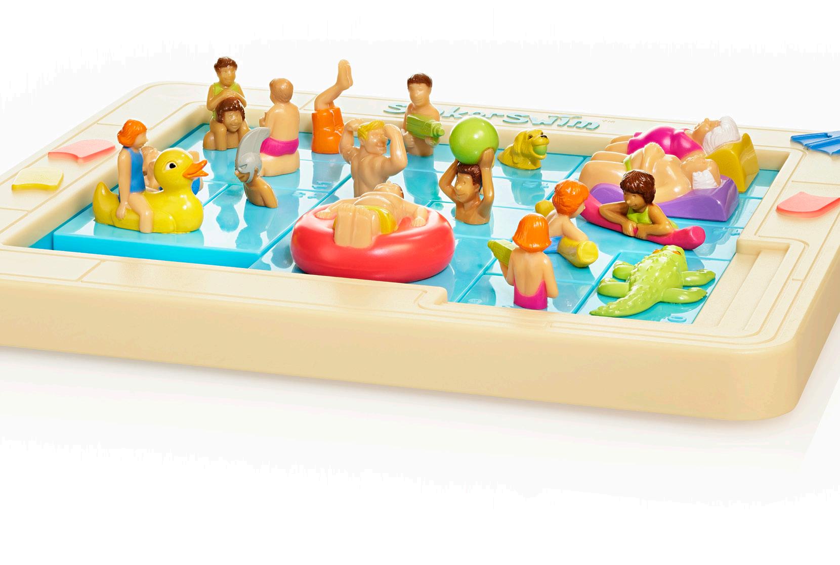 Das Ziel: Schieben Sie den Jungen auf dem roten Reifen zur Treppe in der rechten unteren Ecke des Pools. Dazu müssen Sie mehrere oder alle anderen Teile, die ihm den Weg versperren, verschieben. Der ultimativen Poolparty. Worauf warten Sie? Tauchen Sie ein!